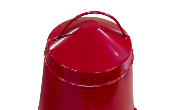 La structure de ce seau est réalisée en tôle d'acier avec une finition en peinture époxy rouge haute visibilité. Sa caractéristique principale, le fond rond (ou bombé), remplit une fonction de sécurité essentielle : elle empêche de poser le seau au sol de manière stable, décourageant ainsi tout détournement de l'usage incendie pour des tâches de nettoyage ou de manutention courante.