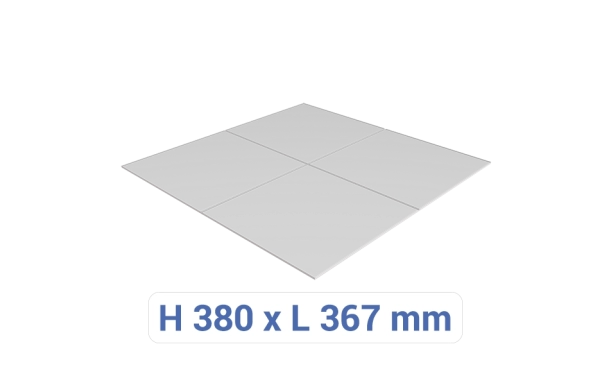 Avec des dimensions de 380 x 367 mm, cette vitre est strictement compatible avec le coffret vanne gaz 450 x 450 x 250 (Réf. 127). Sa faible épaisseur de 2,5 mm lui permet de s'insérer facilement dans les glissières prévues à cet effet, assurant un maintien stable et durable.