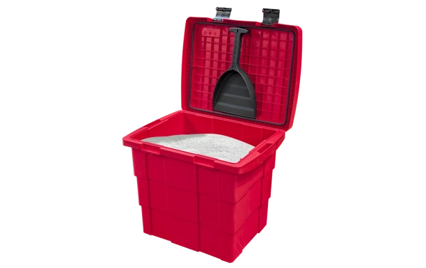This 100L red sandbox made of high-resistance polypropylene allows you to store 108 litres of absorbent material or sand protected from moisture thanks to its integrated sealing gasket.